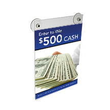 This clear acrylic wall mount poster display frame is available in many different sizes! 1/2" extension on the back has 2 suction cups for easy glass mounting. Graphics are inserted from the sides for quick and easy changing.